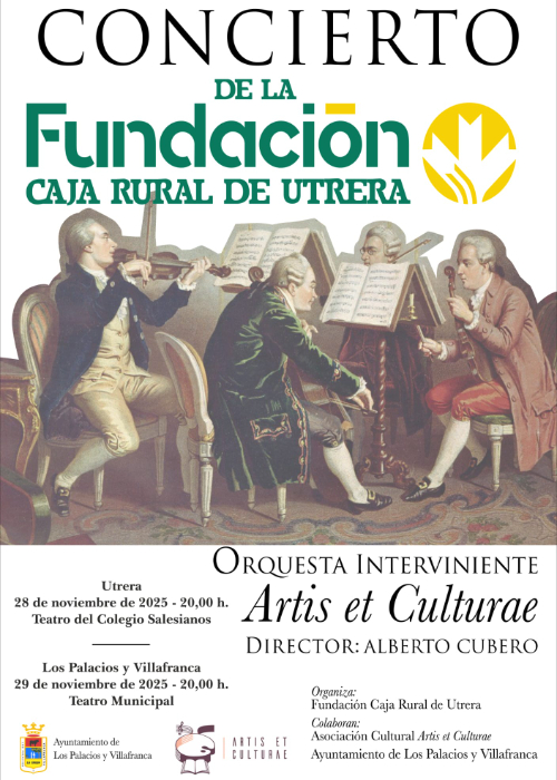 La Sala de Juntas del Ayuntamiento de Los Palacios y Villafranca ha acogido esta mañana la presentación del cartel anunciador del concierto que ofrecerá la Orquesta “Artis et Culturae”, bajo la dirección de Alberto Cubero, el próximo sábado 29 de noviembre, a las 20:00 horas, en el Teatro Municipal Pedro Pérez Fernández.