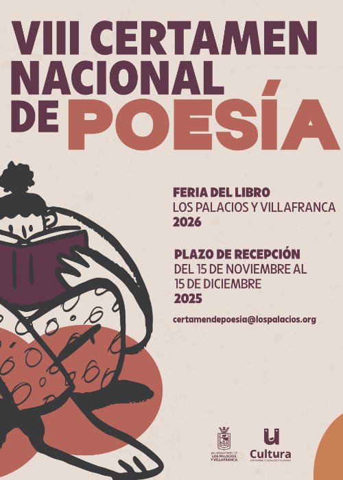 El Ayuntamiento de Los Palacios y Villafranca ha anunciado la convocatoria del VIII Certamen Nacional de Poesía “Feria del Libro de Los Palacios y Villafranca”, cuyo plazo de recepción de obras permanecerá abierto hasta el 15 de diciembre de 2025. Con 2.000 euros en premios, el certamen reafirma su apuesta por el fomento de la creación literaria y el apoyo al talento local, incorporando categorías específicas dirigidas a autores y autoras del municipio.